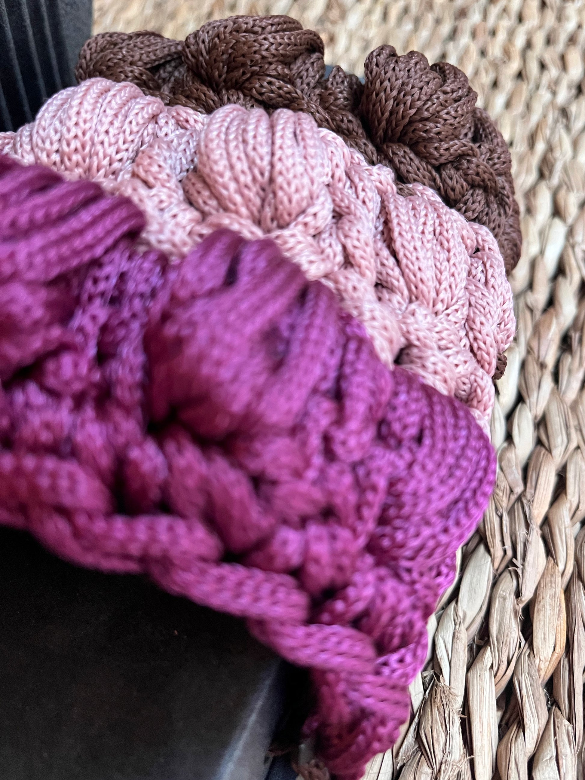 papete com aplicação de crochê em fio náutico.